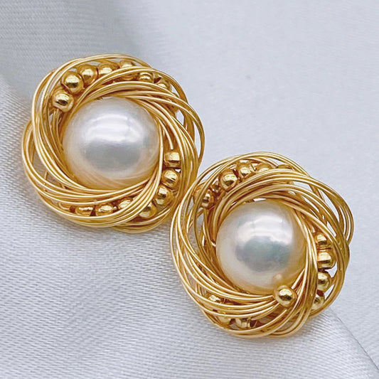 Handmade Bird's Nest {925} Silver Needle Earrings Natural Fresh Water Pearl Temperament Simple Retro All-Match