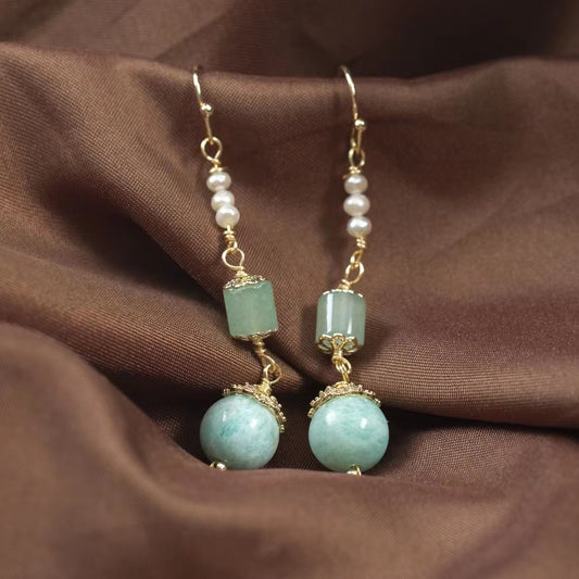 Jade Mixed With Fresh Water Pearl Earrring Chinese tradition style